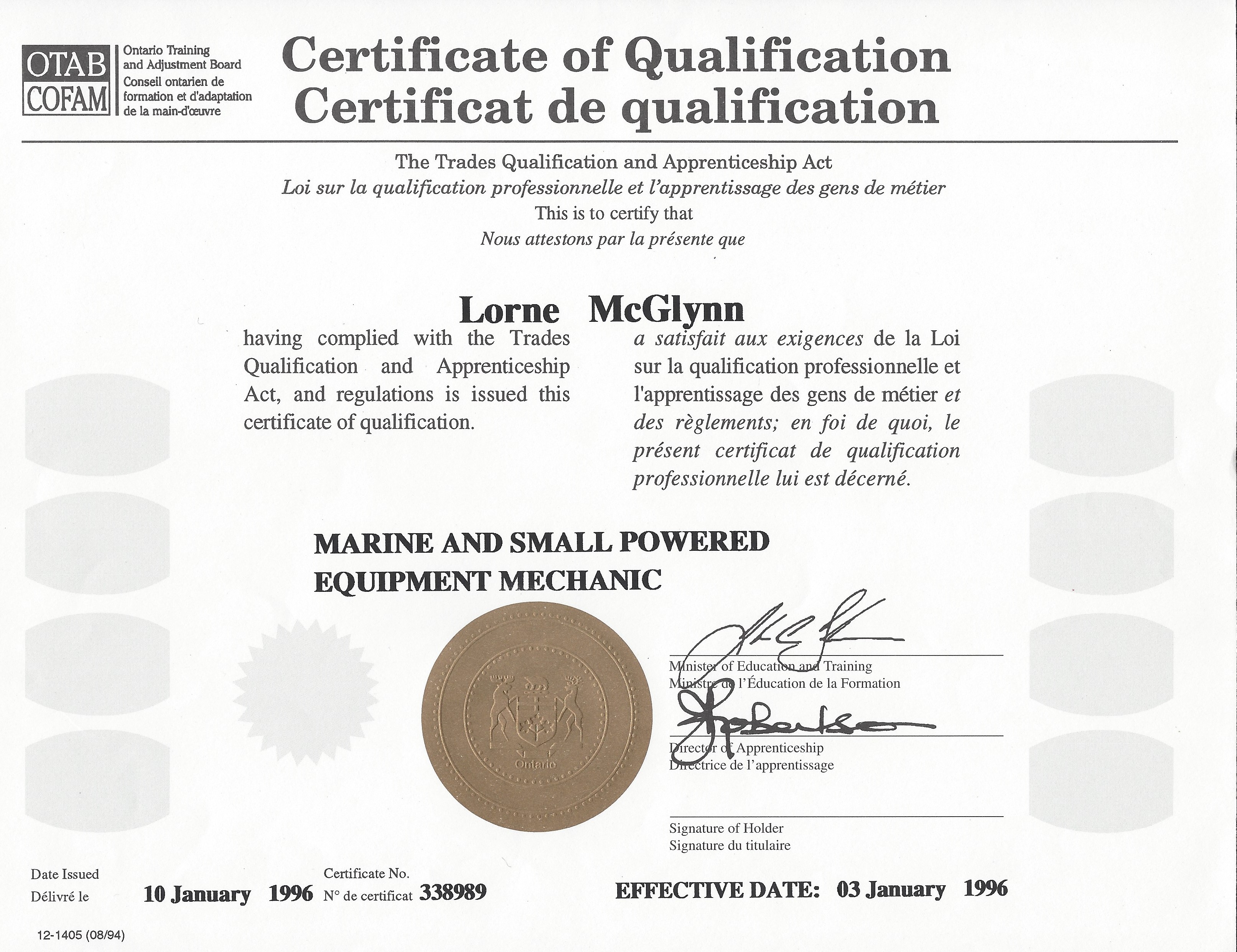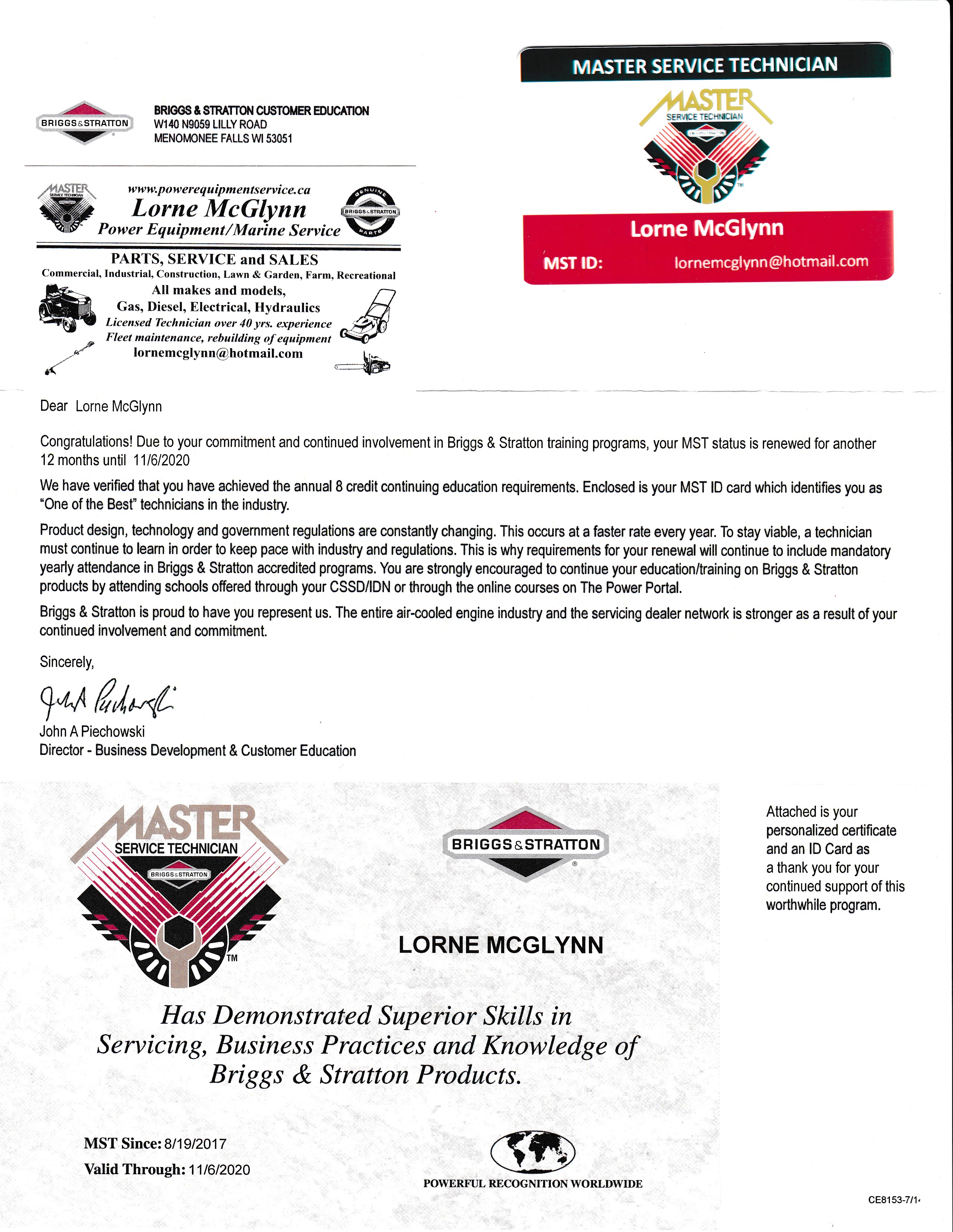 Licensed Technician, Marine. Small engine. Construction Heavy Duty