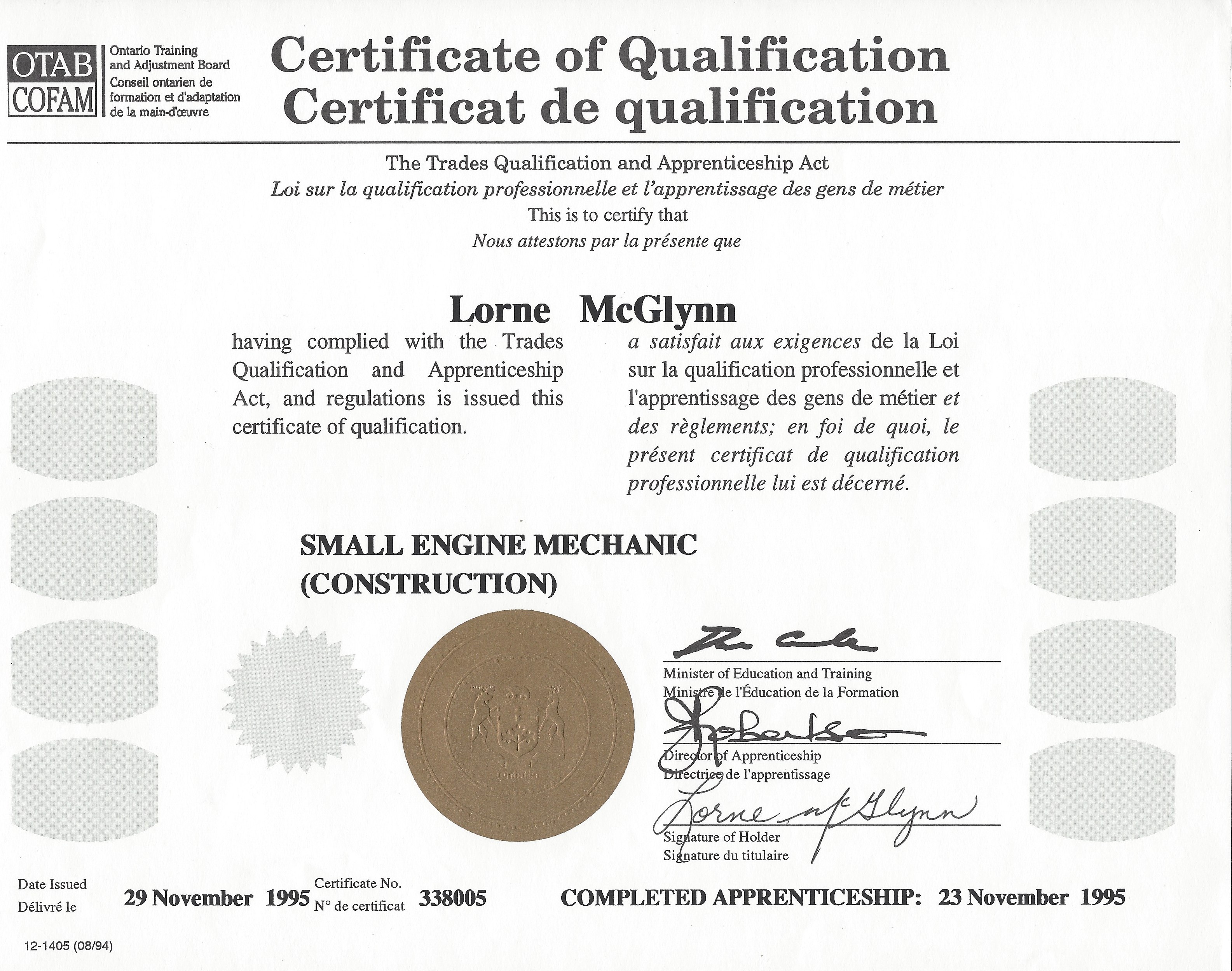The technology used in construction, Industrial and Farm equipment is becoming more sophisticated with the increase use of electronic and computer-controlled components. As a licensed mechanic I keep up to date on training and technology to ensure the best service to the client.